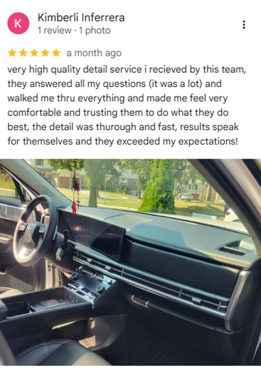 “Booked Meadowvale Sparkle Car Detailing and honestly didn’t expect the car to come out this clean. They showed up on time, worked fast, and somehow got rid of stains I’d been ignoring for months. My SUV literally looks newer than when I bought it. Super professional, no upselling, just solid work. Definitely worth it.”